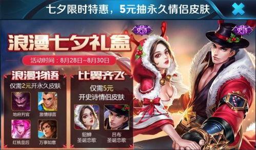 在七夕活动期间,玩家可以以优惠价格购买情侣皮肤。此外,购买情侣皮肤还有机会获得限定奖励,千万不要错过哦!